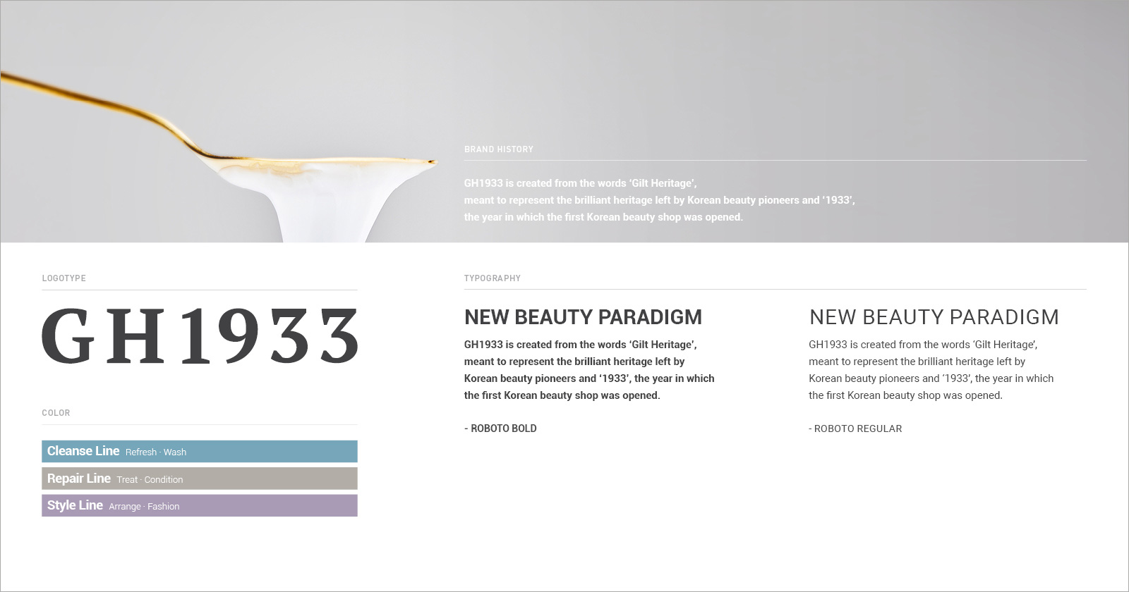 GH1933 is a subsidiary of GH inc., both of which were new start-up brands. GH1933 is a promising beauty brand based on essential virtues and aesthetic technology to enhance beauty. GH1933 holds the meaning of “Gilt Heritage + 1933. The name stems from the first South Korean beauty salon which opened in 1933. Focusing on haircare and related products, GH1933 has already entered the global market, showing great aptitude.